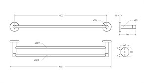 CEZARES Stylus Полотенцедержатель двойной 60 см, исполнение черный матовый