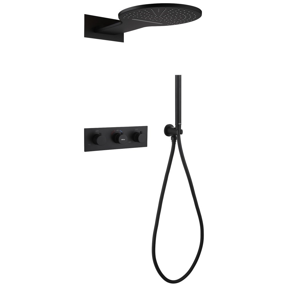 ABBER Душевая система Wasser Kreis AF8151B скрытого монтажа без излива, термостат, черная матовая