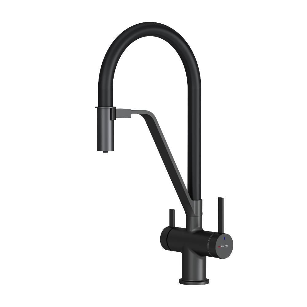 AM.PM Func Смеситель для кухни с каналом для питьевой воды и гибким изливом, черн.,черн. излив