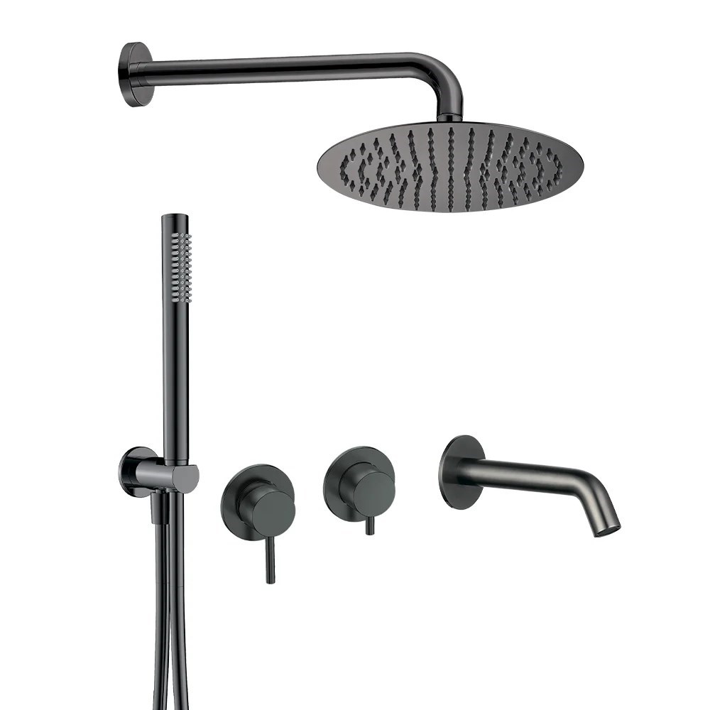 AQUAme AQM8408GM Набор для комплектации ванны с изливом, верхним и ручным душем, темный металл