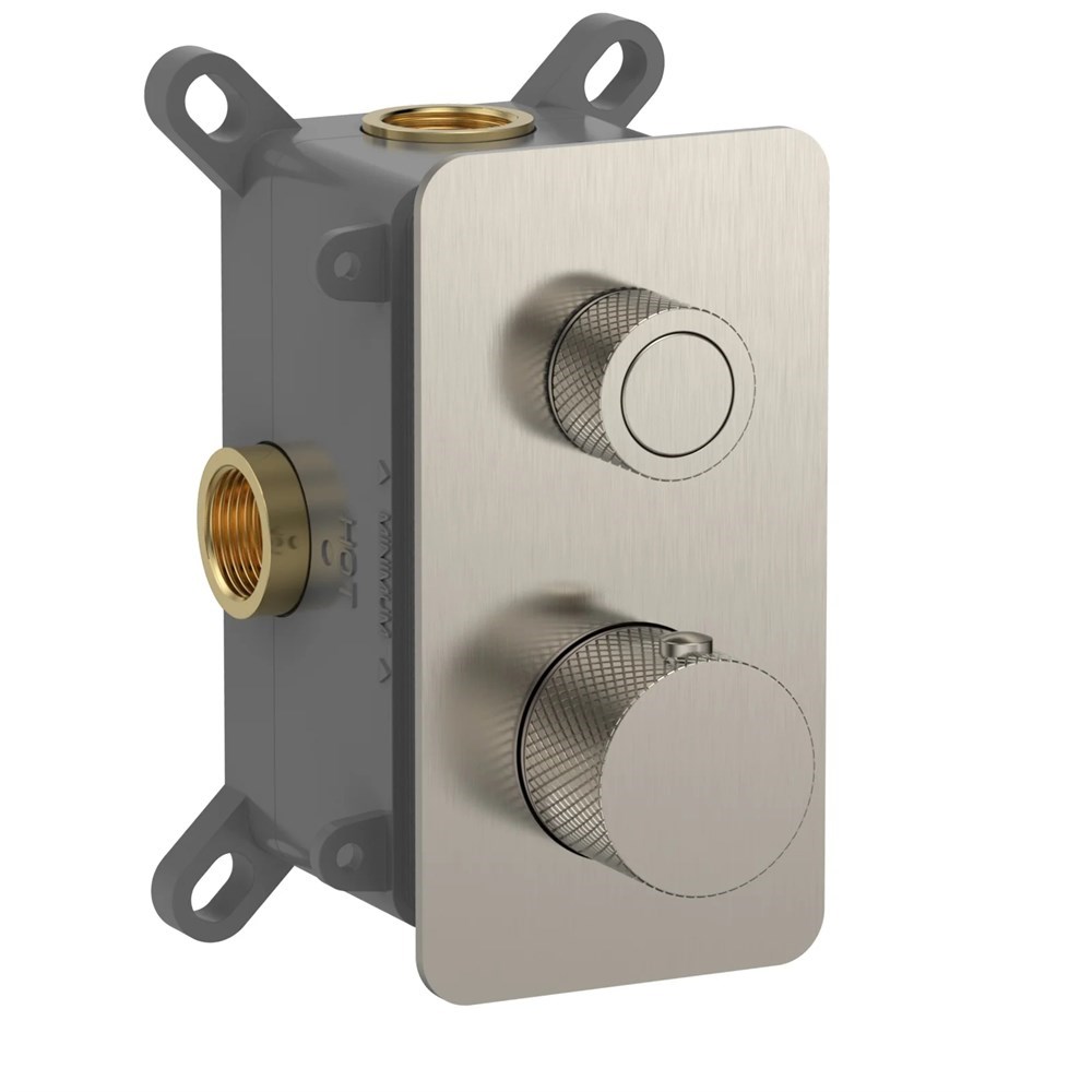 Изделие: смеситель термостатический, Назначение: для душа, для ванны, для раковины, Встраиваемый смеситель: да, Монтаж: на стену, Управление: вентильное, нажимное, Отверстия для монтажа: на 1 отверстие, Особенности: скрытый монтаж, Форма: прямоугольная, Материал: латунь, Гарантия: 5 лет, Страна бренда: Италия