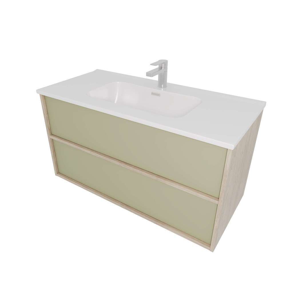 AQUATEK Комплект мебели: Тумба ЛИБРА с раковиной 100см, 2 ящика с системой push-to-open, корпус дерево,цвет фасадов шалфей зеленый