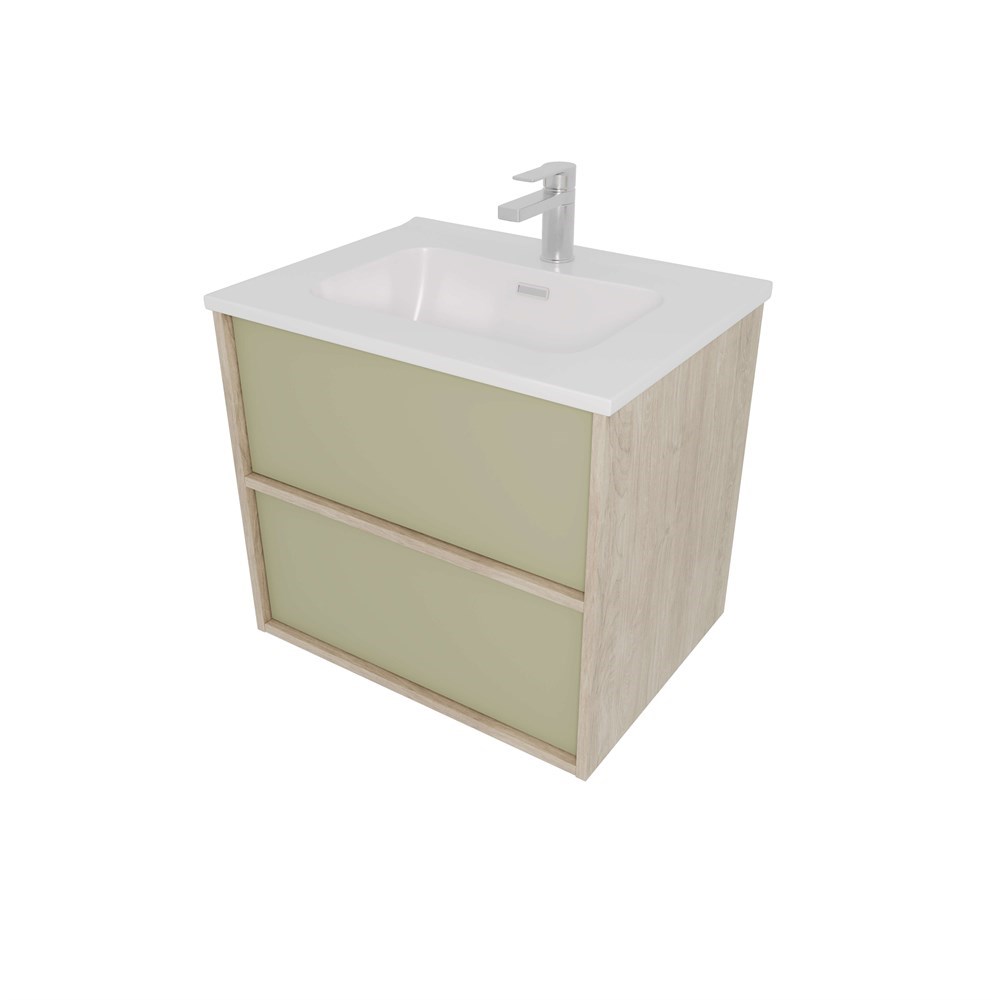 AQUATEK Комплект мебели: Тумба ЛИБРА с раковиной 60см, 2 ящика с системой push-to-open, корпус дерево,цвет фасадов шалфей зеленый