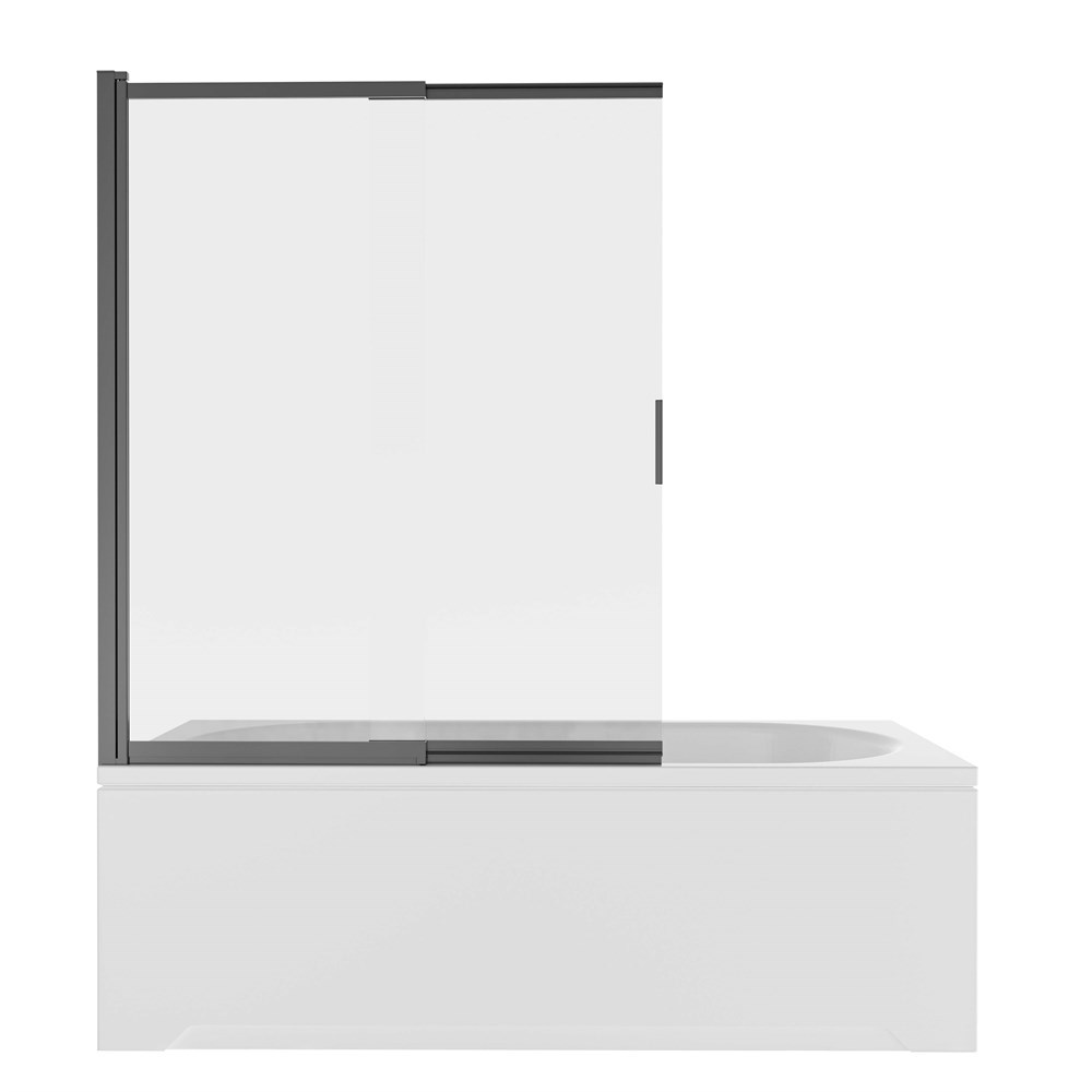 AQUATEK Шторка на ванну стеклянная 100см, раздвижная, двухэлементная, черная матовая, стекло прозрачное, закаленное