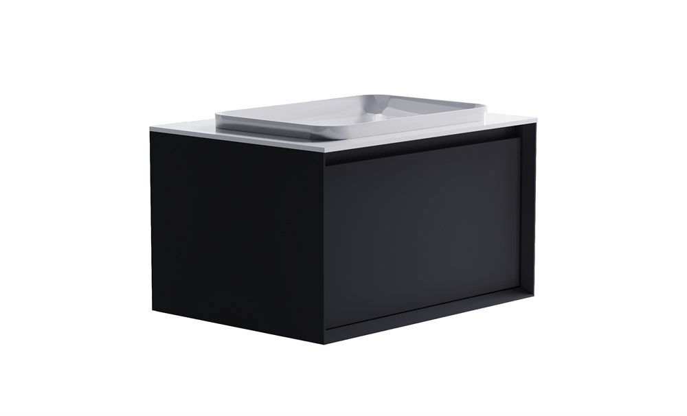ASTRA-FORM Тумба подвесная Фрейм 70 с 1ящ RAL7024 мат. с раковиной Антарес бел гл. и столешницей Solid бел гл.