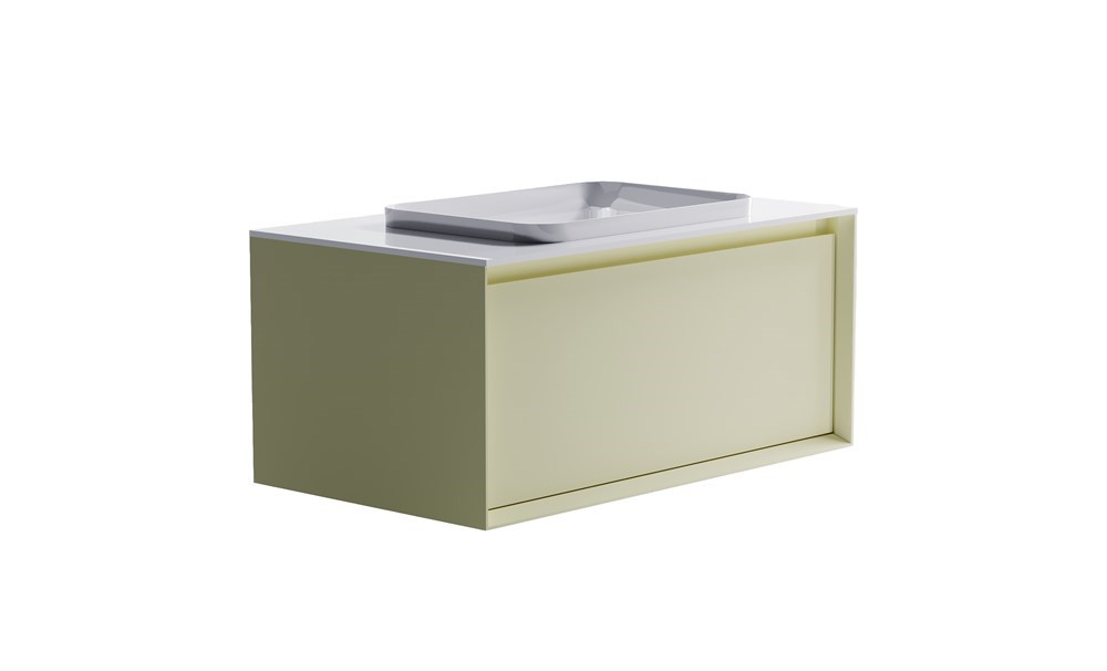 ASTRA-FORM Тумба подвесная Фрейм 90 с 1ящ RAL1013 мат. с раковиной Антарес бел гл. и столешницей Solid бел гл.