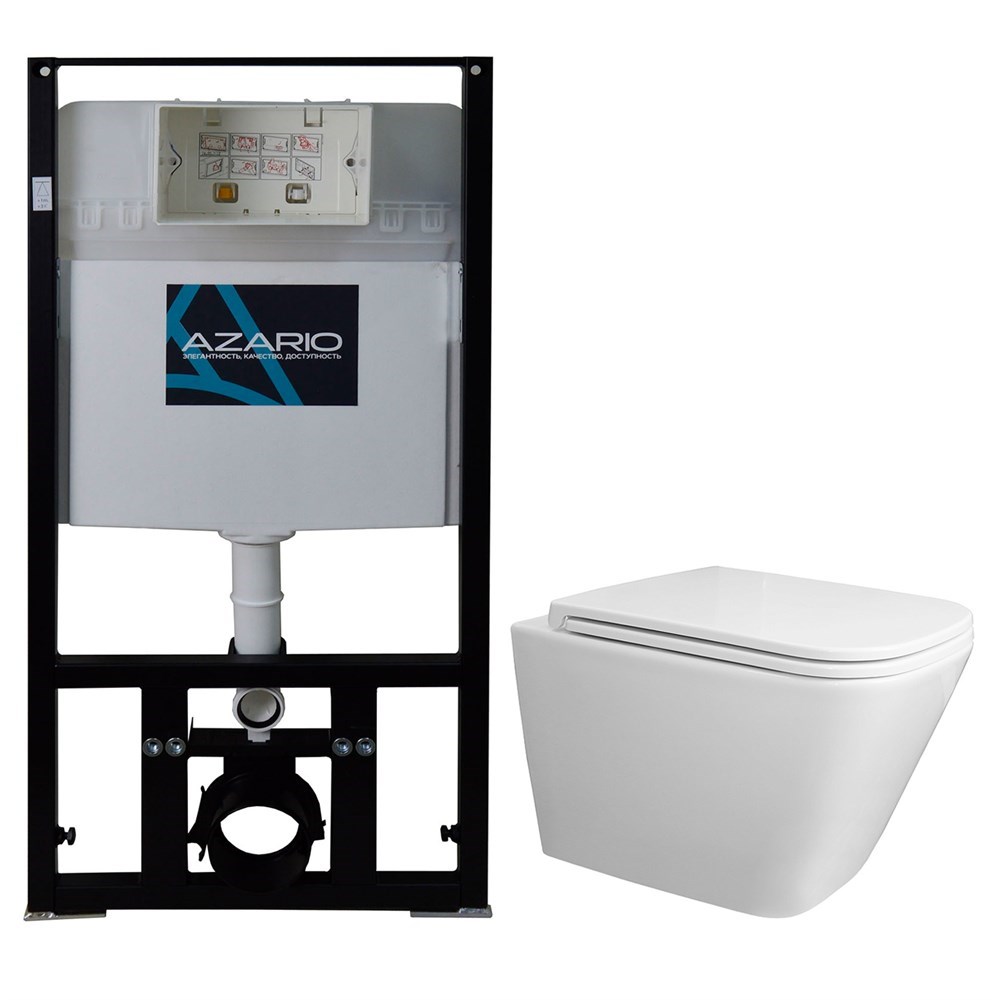 AZARIO Сет: Инсталляция для подвесного унитаза 3/6л + унитаз Teramo подвесной, безободковый, слив "Скрытое Торнадо", с сиденьем микролифт (AZ-8010-1000+AZ-0052-UQ3)
