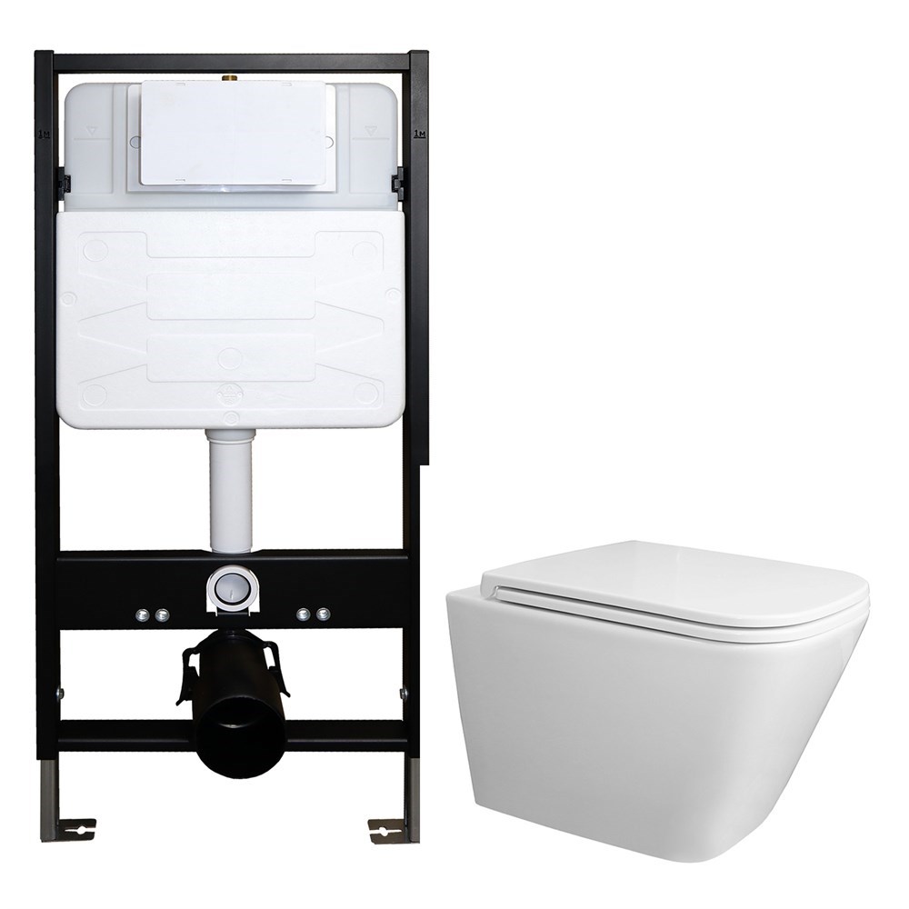 AZARIO Сет: Инсталляция для подвесного унитаза AZARIO FORTE 3/6л.+ подвесной унитаз Azario Teramo, безободковый, смыв "Скрытое Торнадо", сиденье микролифт (AZ-100-100F+AZ-0052-UQ3)