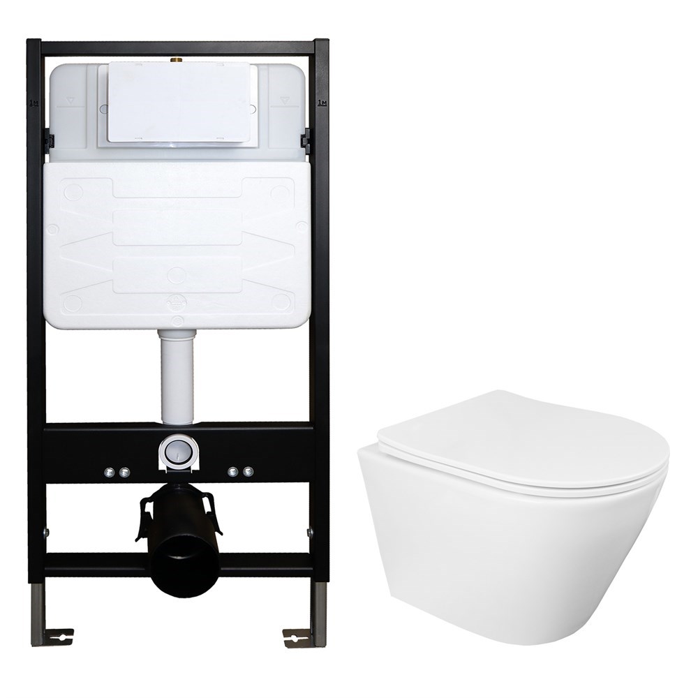 AZARIO Сет: Инсталляция для подвесного унитаза AZARIO FORTE + подвесной унитаз Loranto KROSA с системой смыва Торнадо, сиденье микролифт (AZ-100-100F+87266)