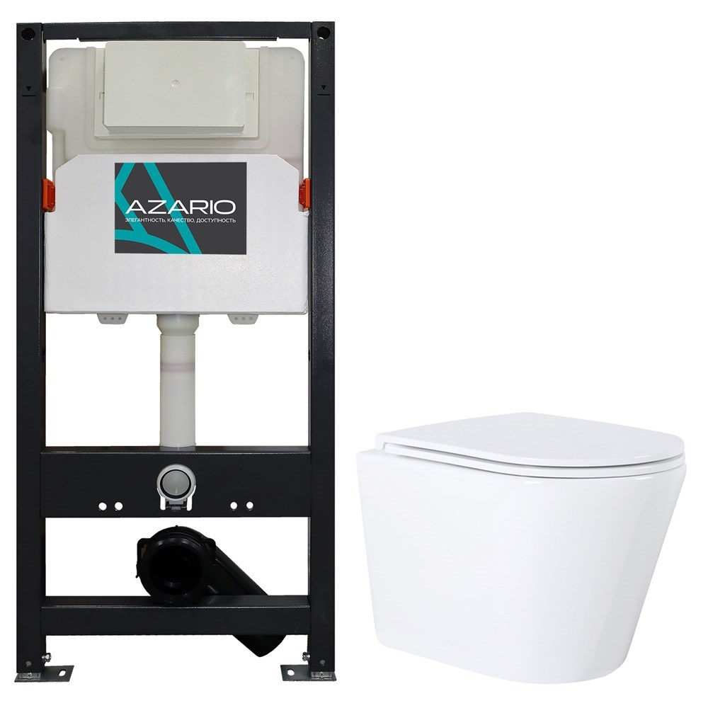 AZARIO Сет: Инсталляция для подвесного унитаза AZARIO NEW 3/6л + Унитаз напольный Azario Teramo, безободковый, с сидением микролифт (AZ-501A+AZ-0053)