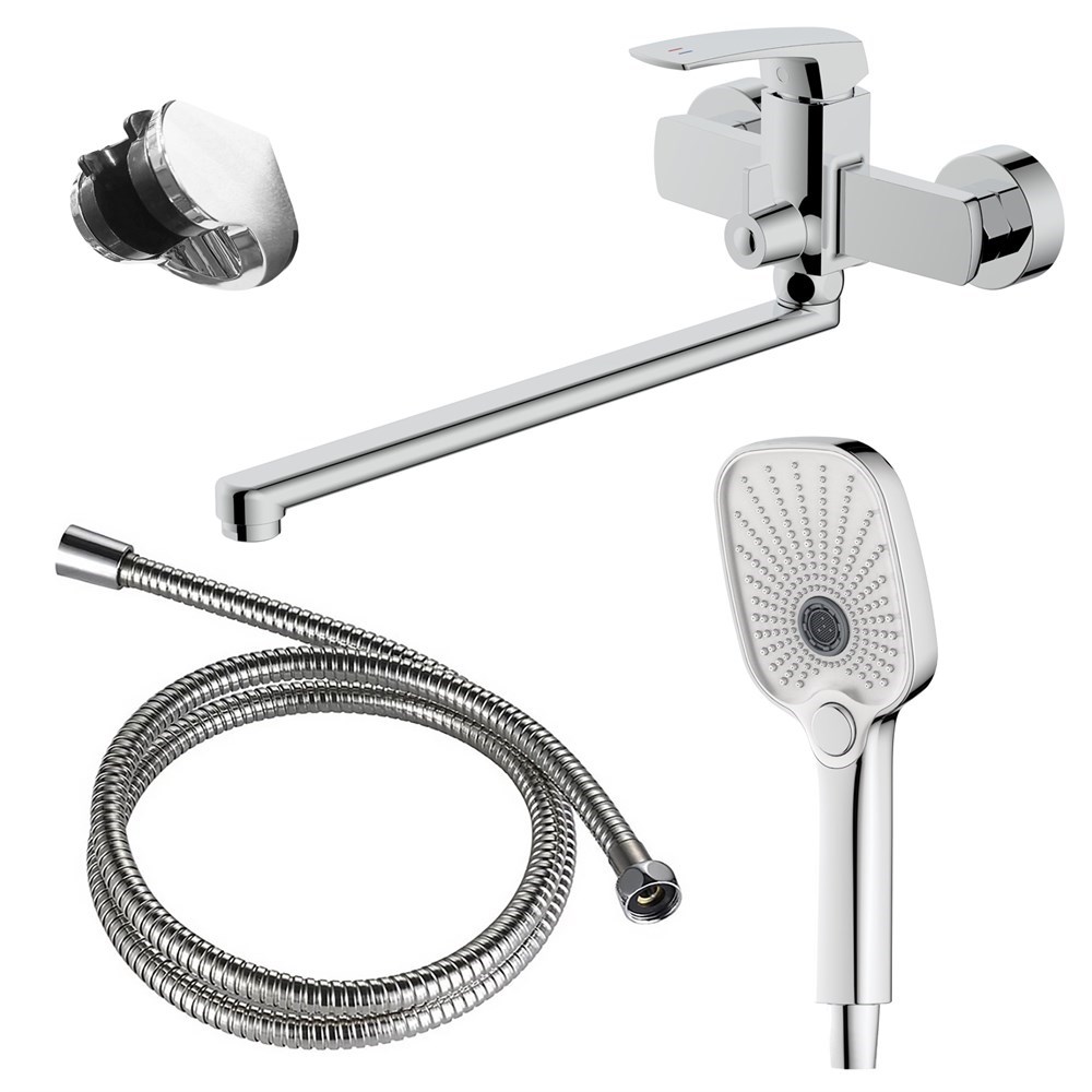 AZARIO Смеситель для ванны Conda керамический картридж, длинный излив, с ручным душем, шланг 150 см, хром (AZ-K1711)