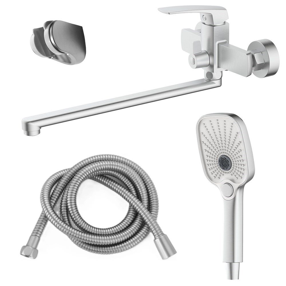 AZARIO Смеситель для ванны Conda керамический картридж, длинный излив, с ручным душем, шланг 150 см, сатин (AZ-K1711B)
