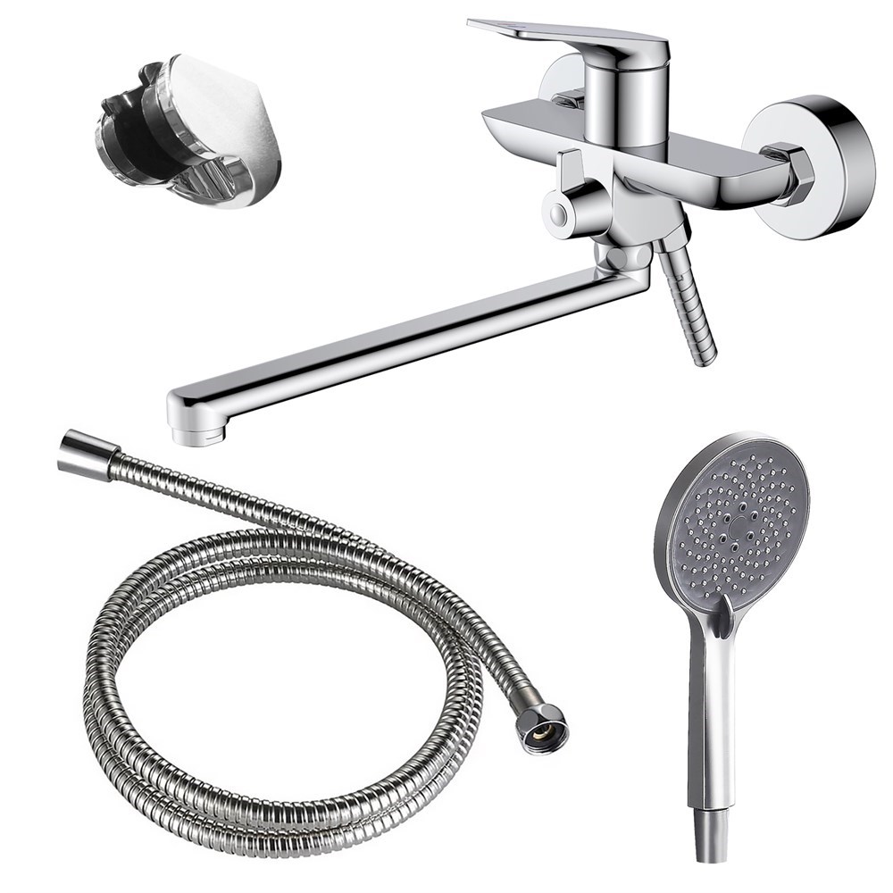 AZARIO Смеситель для ванны Lursy керамический картридж, длинный излив, с ручным душем, шланг 150 см, хром (AZ-K1749)
