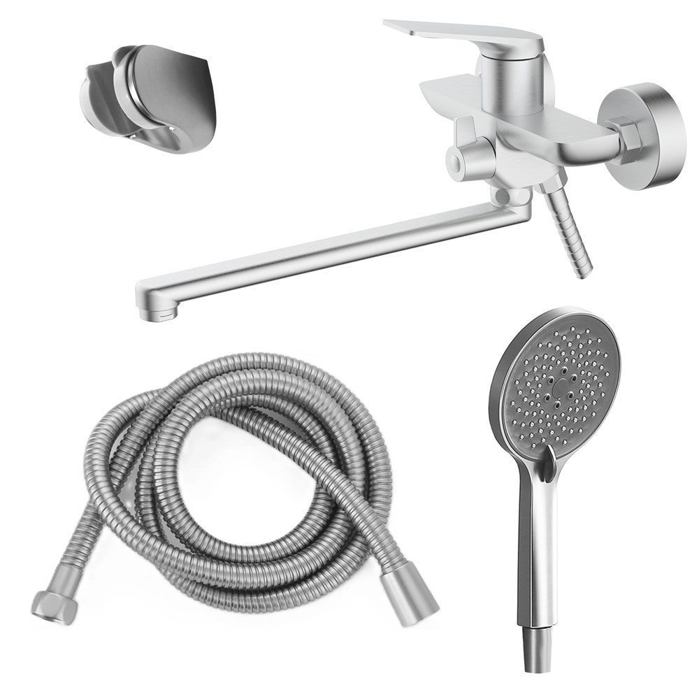 AZARIO Смеситель для ванны Lursy керамический картридж, длинный излив, с ручным душем, шланг 150 см, сатин (AZ-K1749BN)