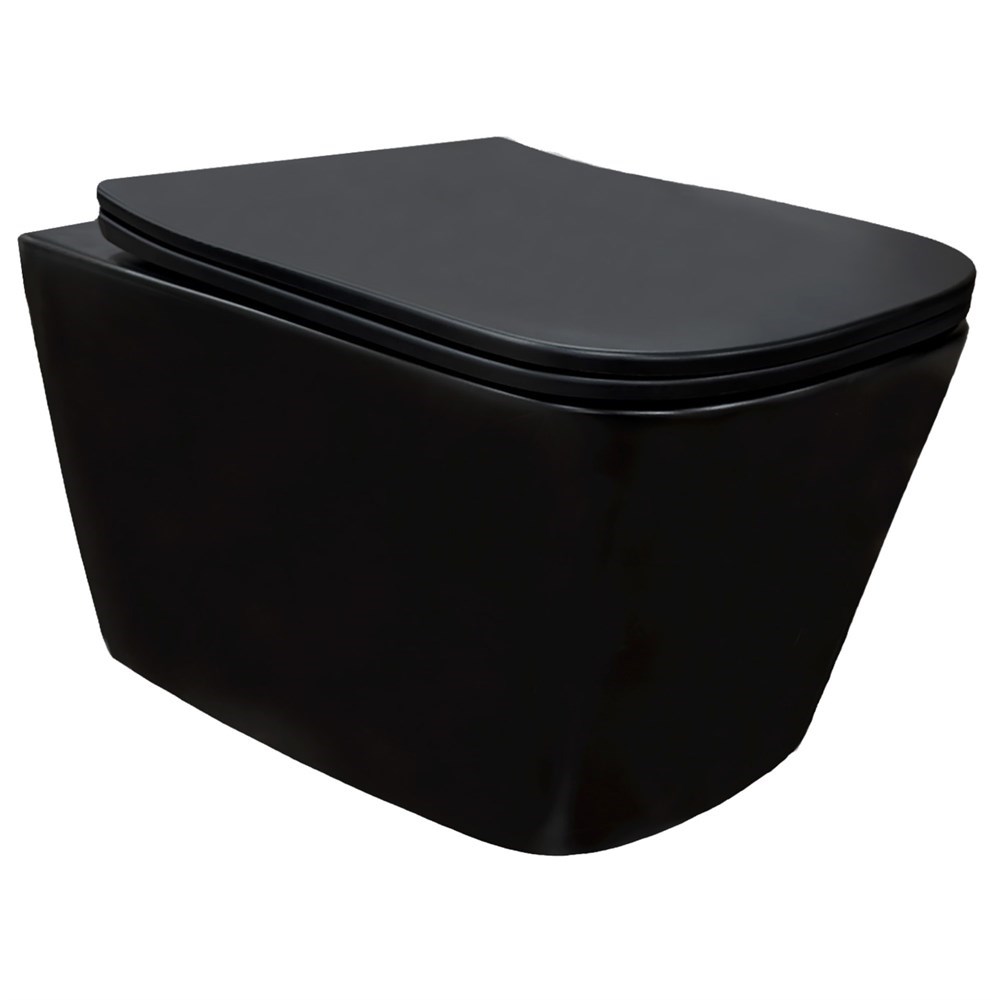 AZARIO Унитаз подвесной Cascad-Black 360х520х365 безободковый, система смыва "скрытое Торнадо", с быстросъемным сиденьем "Микролифт", черный матовый (AZ-2303A-MB)