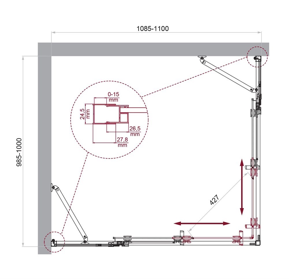 BELBAGNO Luce Душевой уголок прямоугольный размер 110x100 см профиль - хром / стекло - прозрачное, двери раздвижные, стекло 6 мм