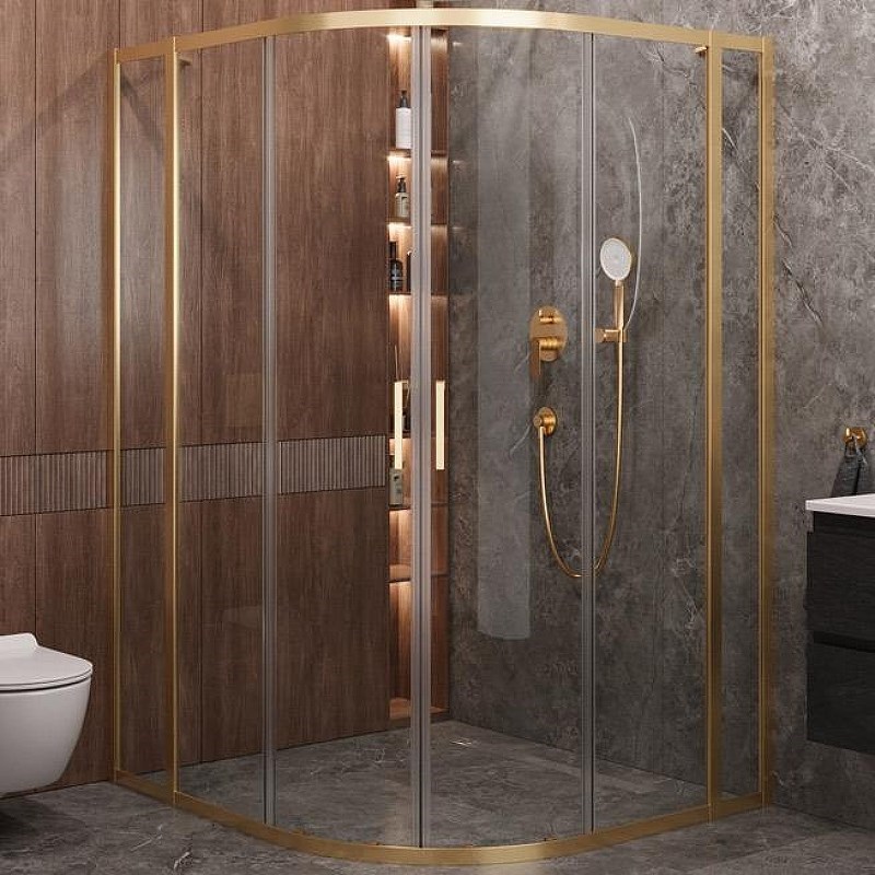 CEZARES Molveno Душевой уголок асимметричный размер 130x120 см двери раздвижные профиль - брашированное золото / стекло - прозрачное