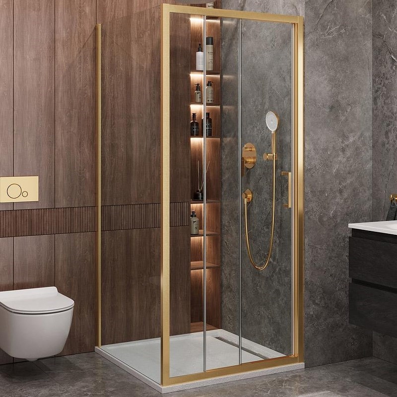 CEZARES Molveno Душевой уголок прямоугольный размер 100x90 см двери раздвижные профиль - брашированное золото / стекло - прозрачное