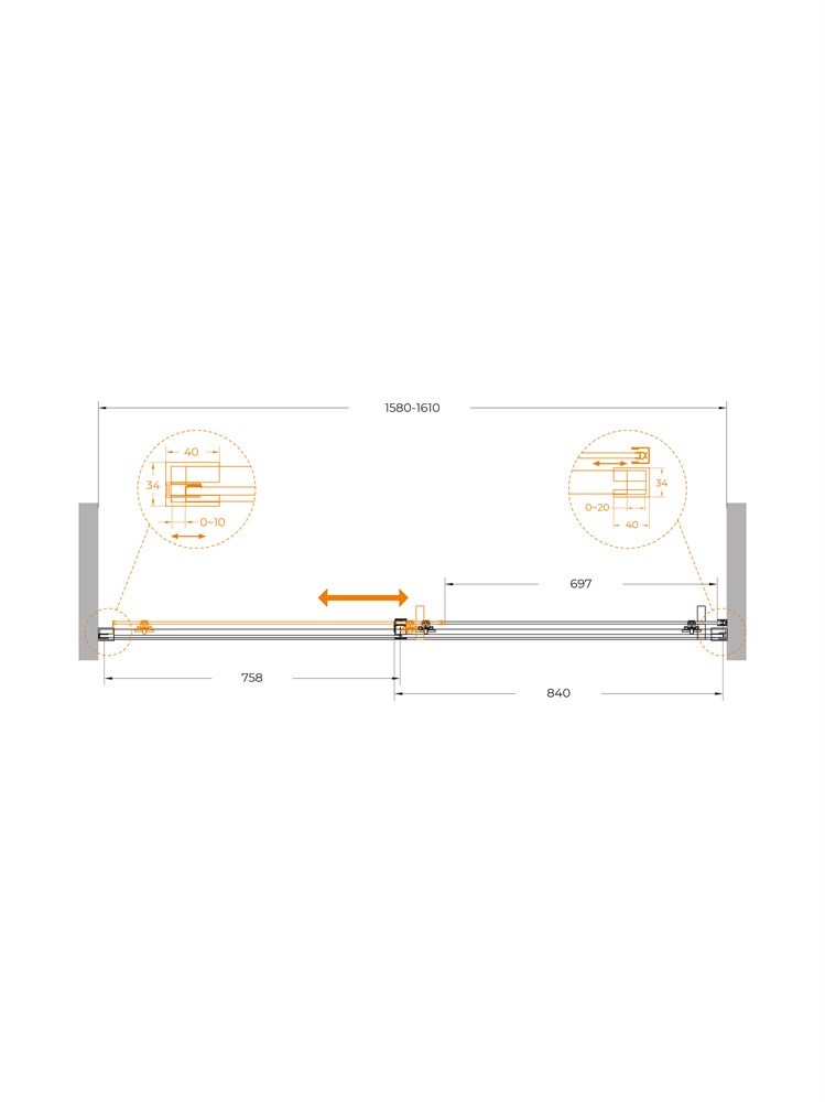 CEZARES Plane Душевая дверь в нишу раздвижная профиль - хром / стекло - прозрачное, ширина 160 см