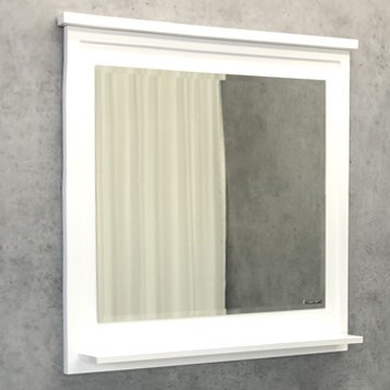 Прямоугольное зеркало в неоклассическом стиле из высококачественного полотна с амальгамой на основе серебра. Полка для размещения принадлежностей для умывания.