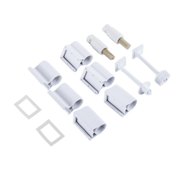 Комплект универсальных креплений из прочного пластика с функцией микролифт для плавного и бесшумного опускания крышки унитаза.