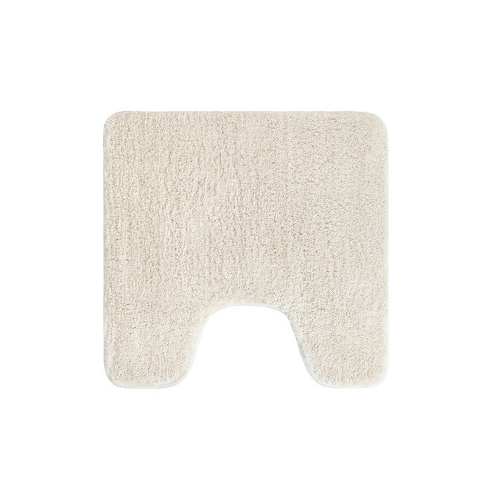Мягкий коврик для ванной теплого бежевого цвета с плотным высоким ворсом (2 см), очень приятный на ощупь. Стриженый ворс из микрофибры отлично держит форму, легко чистится и быстро сохнет. Коврик имеет вырез под унитаз и предназначен для туалета.