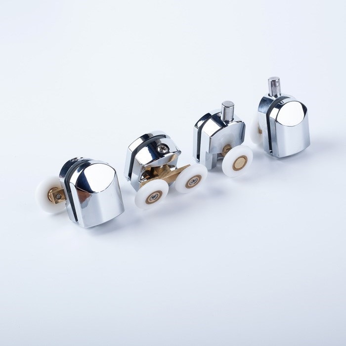 Комплект роликов для раздвижных дверей душевой кабины или ограждения. Подходят для стекол толщиной 5-6 мм. Комплект из 4 штук (2 верхних и 2 нижних ролика).