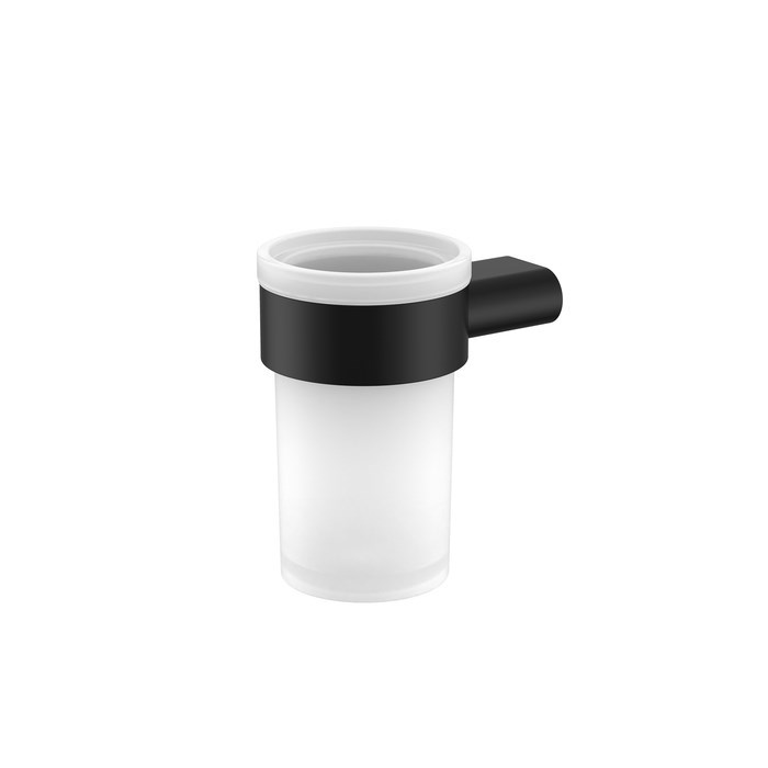 Стильный стакан Petite из матового белого стекла в держателе чёрного матового цвета.