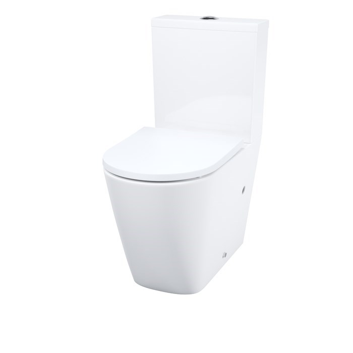 Конструкция с закрытой чашей позволяет установить унитаз вплотную к стене. На случай, если вода будет подводиться сбоку, по обеим сторонам предусмотрены отверстия; их можно закрыть заглушкой при необходимости.
