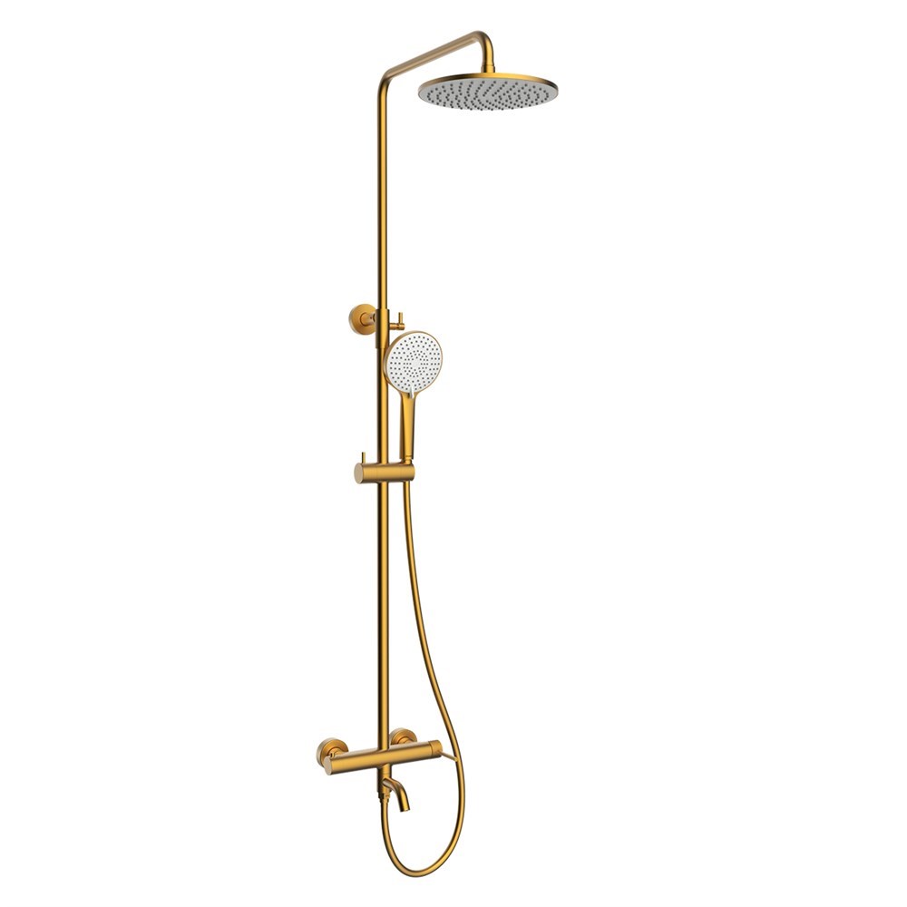 LEMARK Смеситель Karelia LMF-2026S-BRG для ванны и душа с регулируемой высотой штанги и лейкой верхнего душа «Тропический дождь», брашированное золото