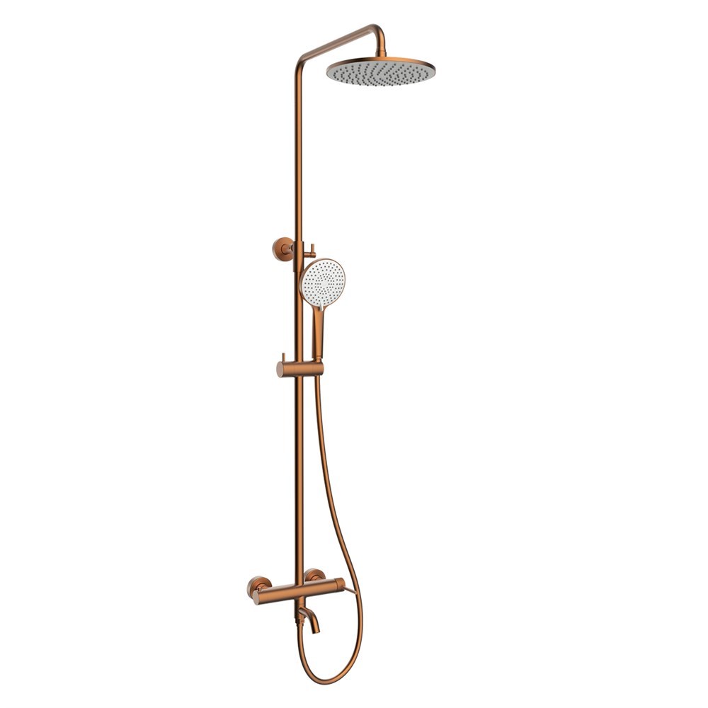 LEMARK Смеситель Karelia LMF-2026S-BRRG для ванны и душа с регулируемой высотой штанги и лейкой верхнего душа «Тропический дождь», брашированное розовое золото