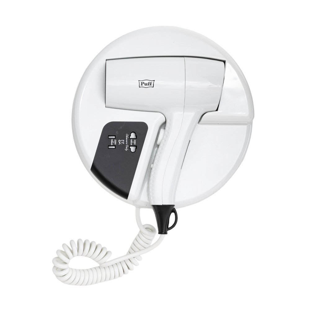 PUFF Фен для волос настенный "Puff-1202B", белый, с доп. розеткой