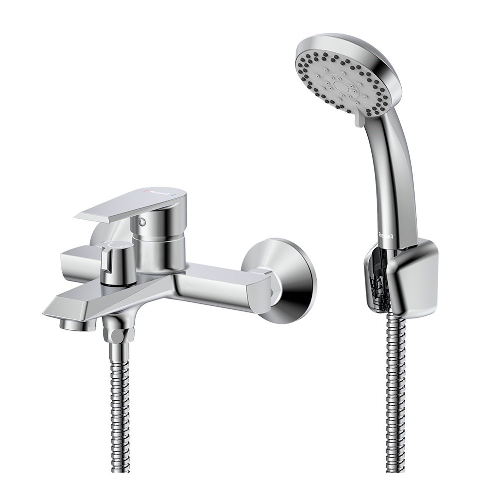 - Аксессуары в комплекте (5-функциональная лейка Ø85×195 мм, настенное крепление для лейки, душевой шланг 1,5 м)