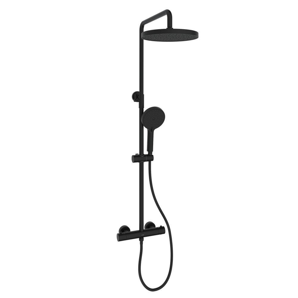 SANCOS Душевая стойка Teo c термостатом, с регулировкой по высоте, c верхним душем ?250 мм , ручным душем ?130 мм, 3 режима, цвет черный матовый, арт. SC11001MB
