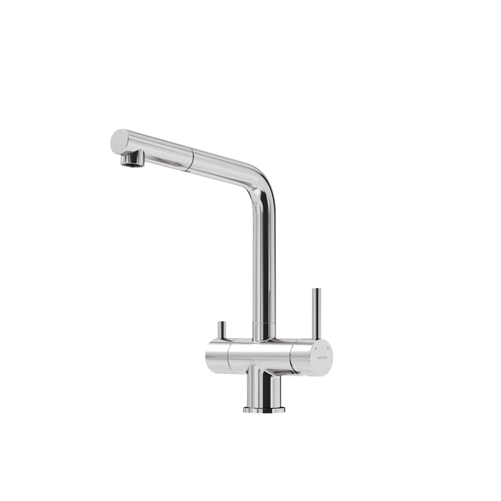 SANCOS Смеситель для кухни Spin с поворотным и вытяжным изливом, c краном для фильтрованной воды, цвет брашированный никель, арт. SC4015BN