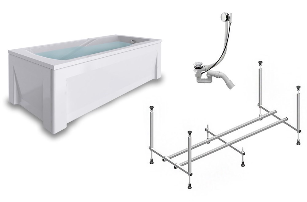TIMO Комплект Акриловая ванна HELLA1575 150*75*63+Каркас + Слив-перелив+Фронтальная панель+Торцевая панель