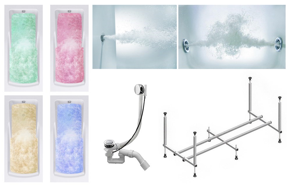 TIMO Комплект Акриловая ванна HELLA1575 150*75*63+Каркас + Слив-перелив+Гидромассаж 6 форсунок+Гидромассаж спины 3 форсунки+Хромотерапия