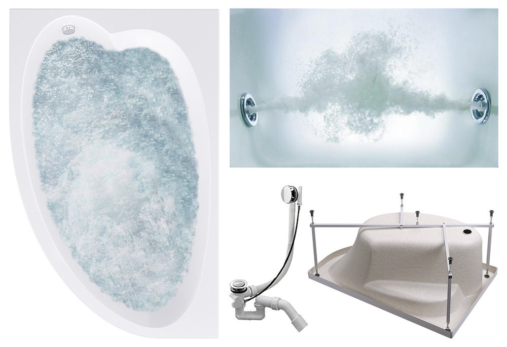 TIMO Комплект Акриловая ванна IVA1610L 160*100*70+Каркас + Слив-перелив+Гидромассаж 6 форсунок