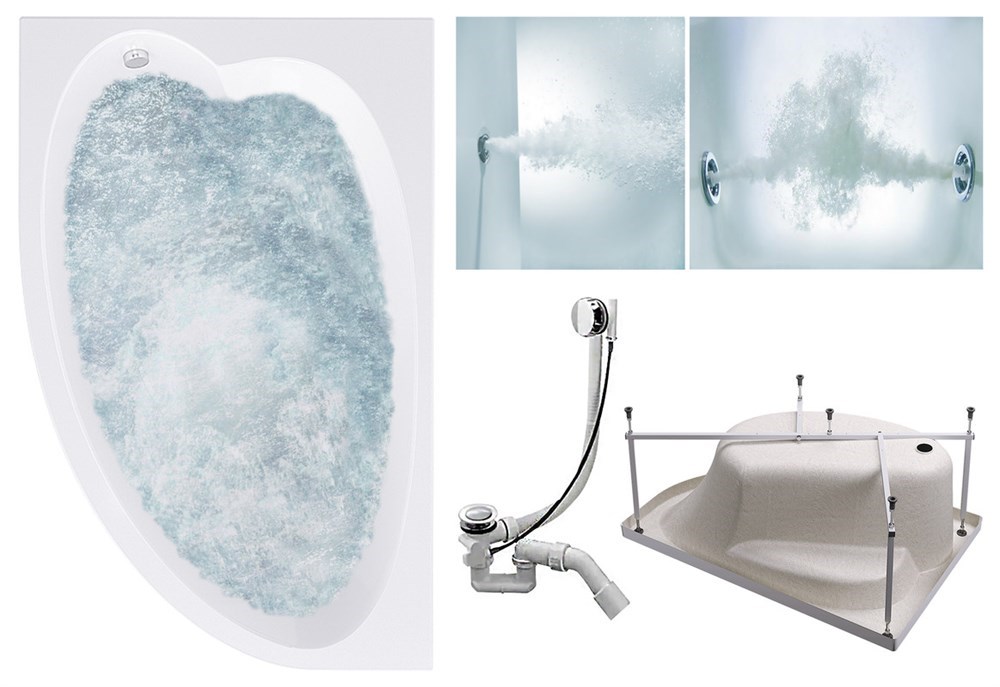 TIMO Комплект Акриловая ванна IVA1610L 160*100*70+Каркас + Слив-перелив+Гидромассаж 6 форсунок+Гидромассаж спины 3 форсунки