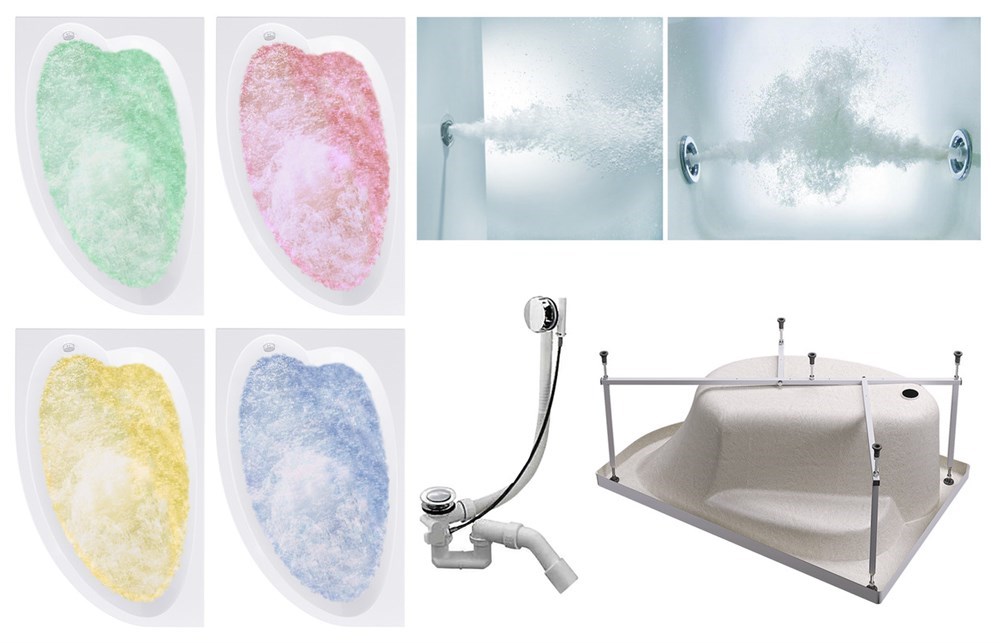 TIMO Комплект Акриловая ванна IVA1610L 160*100*70+Каркас + Слив-перелив+Гидромассаж 6 форсунок+Гидромассаж спины 3 форсунки+Хромотерапия