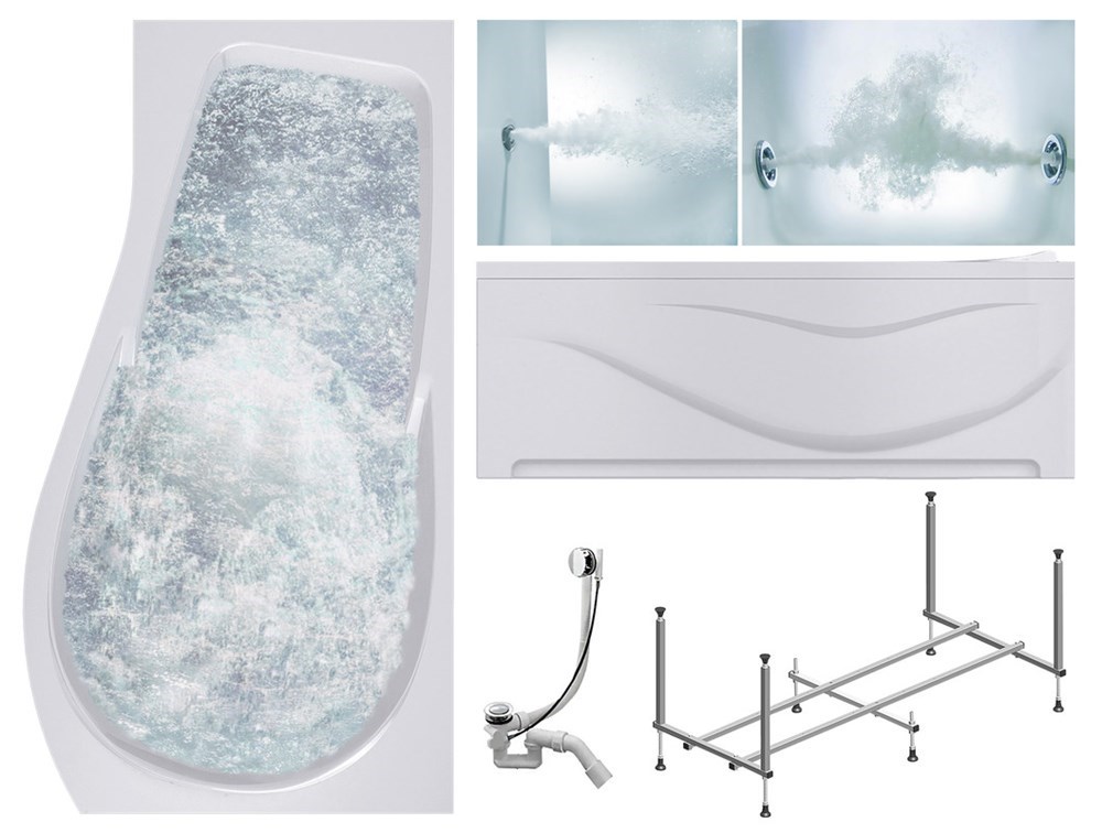 TIMO Комплект Акриловая ванна VINO1590R 150*90*66+Каркас + Слив-перелив+Гидромассаж 6 форсунок+Гидромассаж спины 3 форсунки+Фронтальная панель