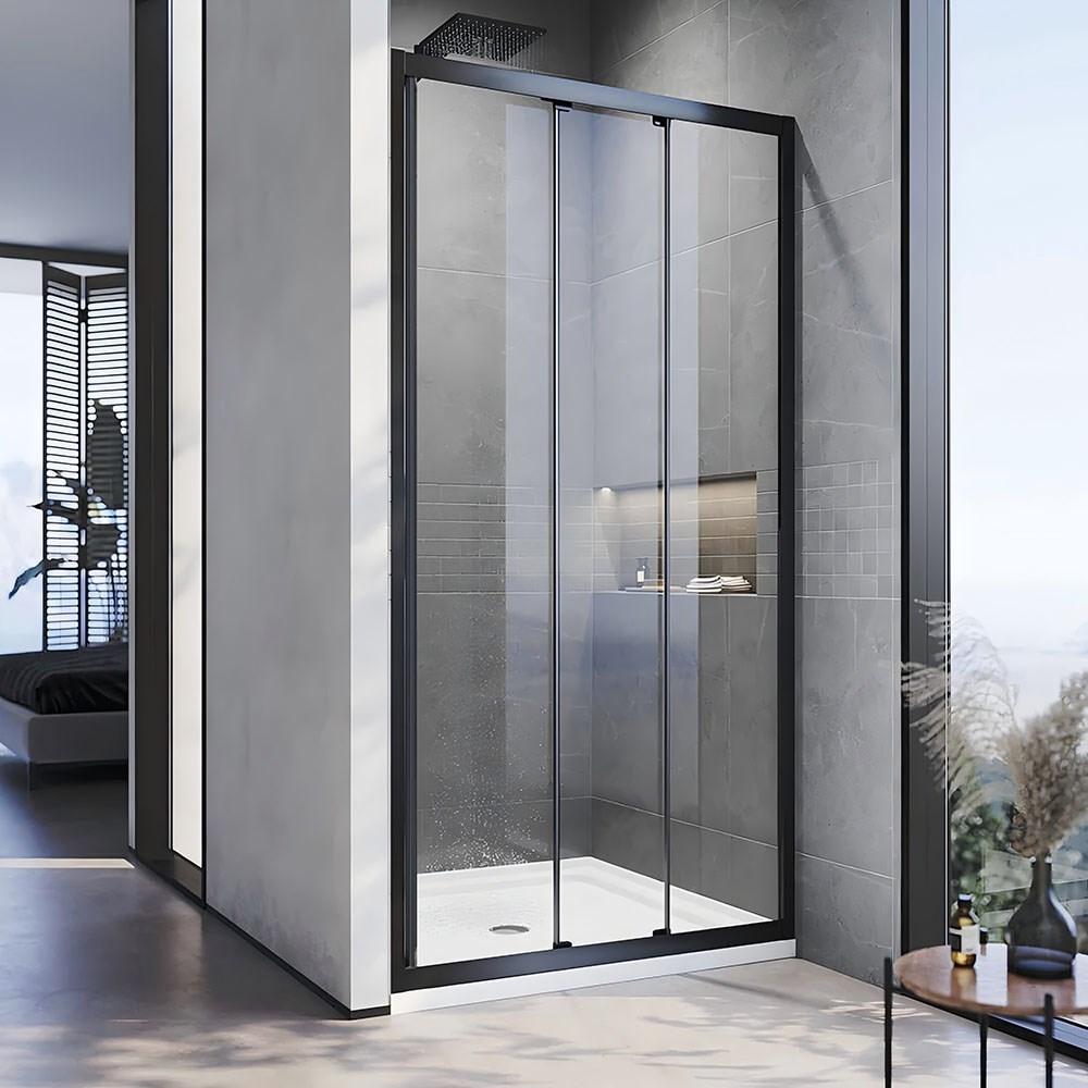VECONI Душевая дверь раздвижная Vianno VN-28B, 1000x1950, Черный матовый, стекло прозрачное