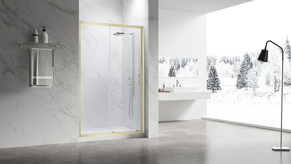 VECONI Душевая дверь раздвижная Vianno VN-55G, 1500x1950, Золото брашинг, стекло прозрачное