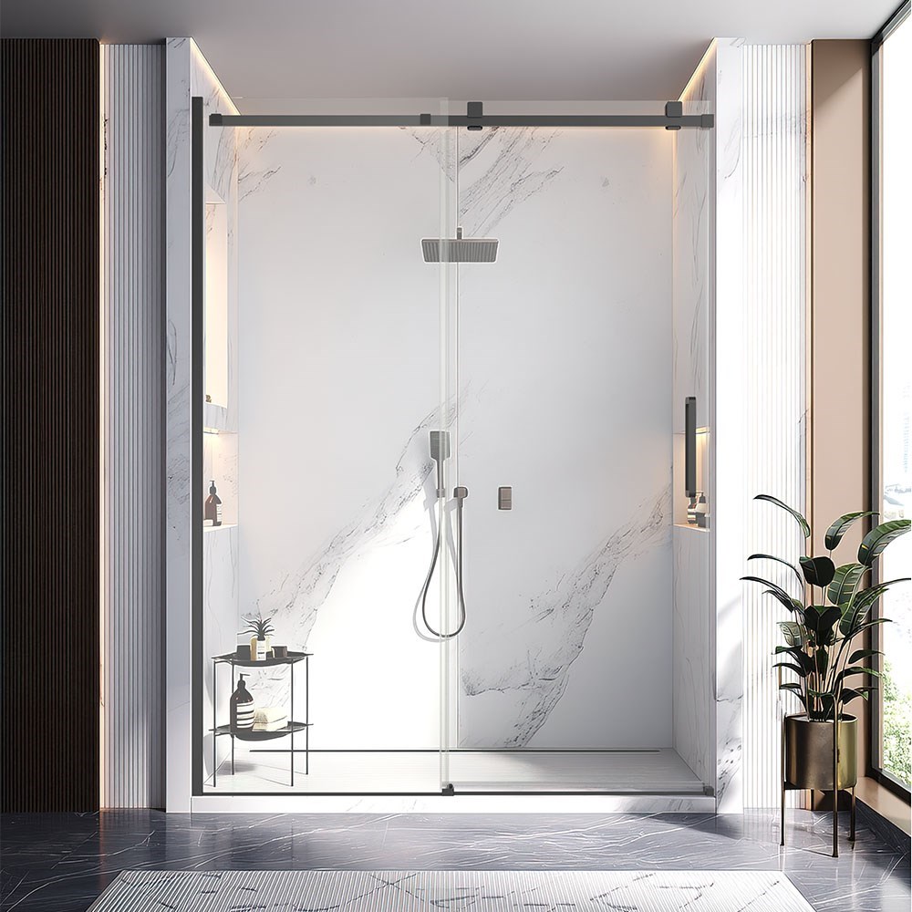 VECONI Душевая дверь раздвижная Vianno VN-75B, 1700x2000, черный матовый, стекло прозрачное