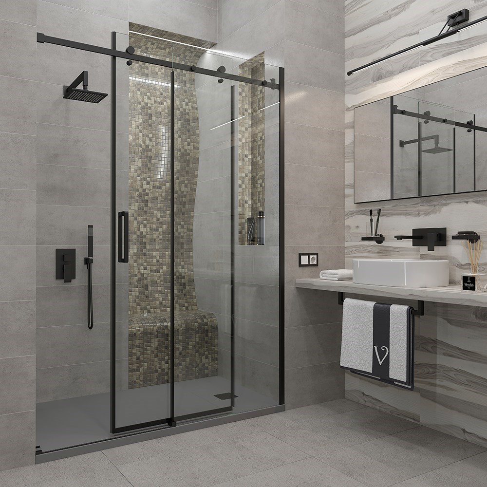 VECONI Vianno Душевая дверь раздвижная профиль - черный / стекло - прозрачное, ширина 120 см