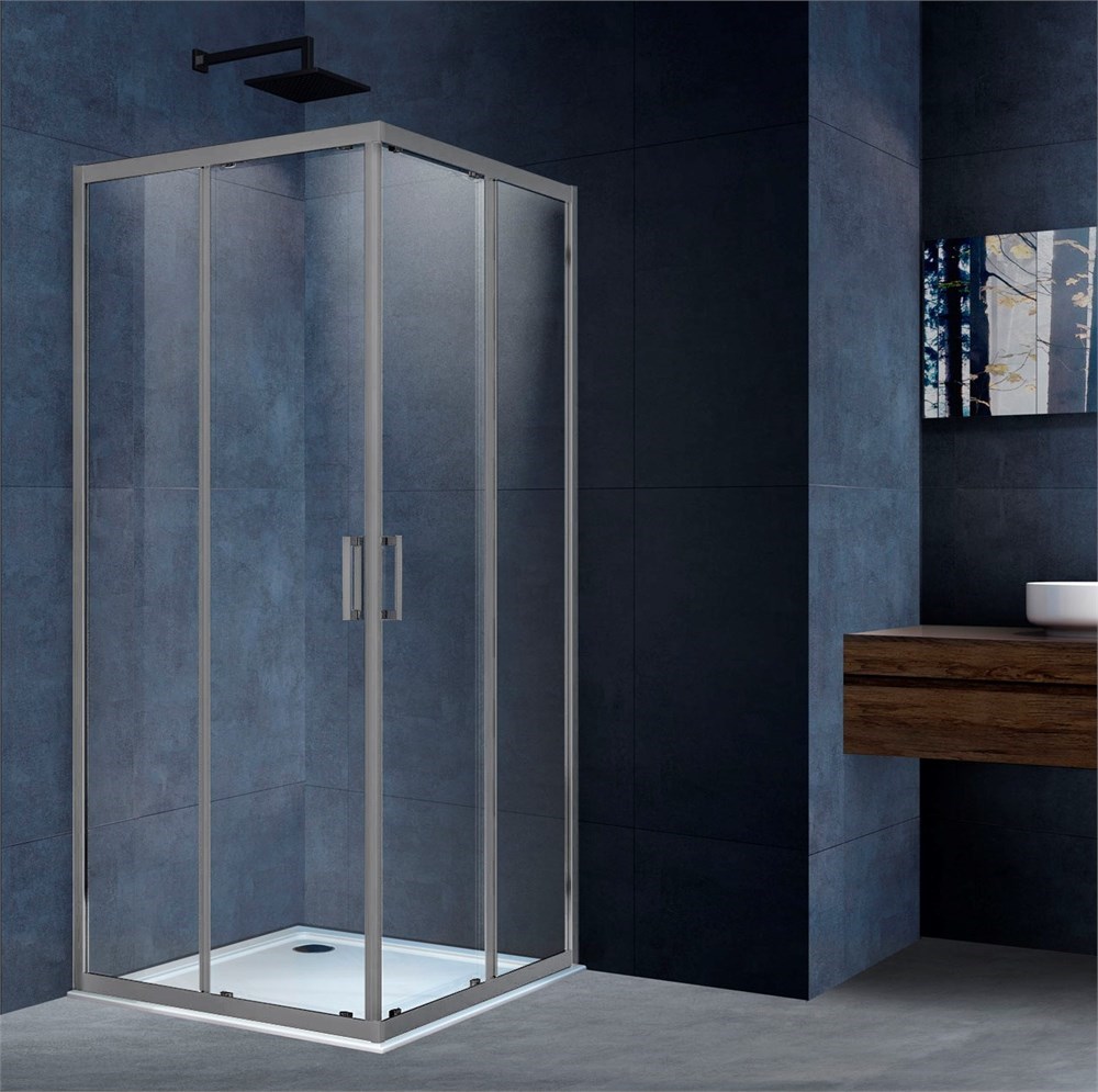 VINCEA Alpha Душевой уголок квадратный размер 90x90 см, двери раздвижные, профиль - вороненая сталь / стекло - прозрачное