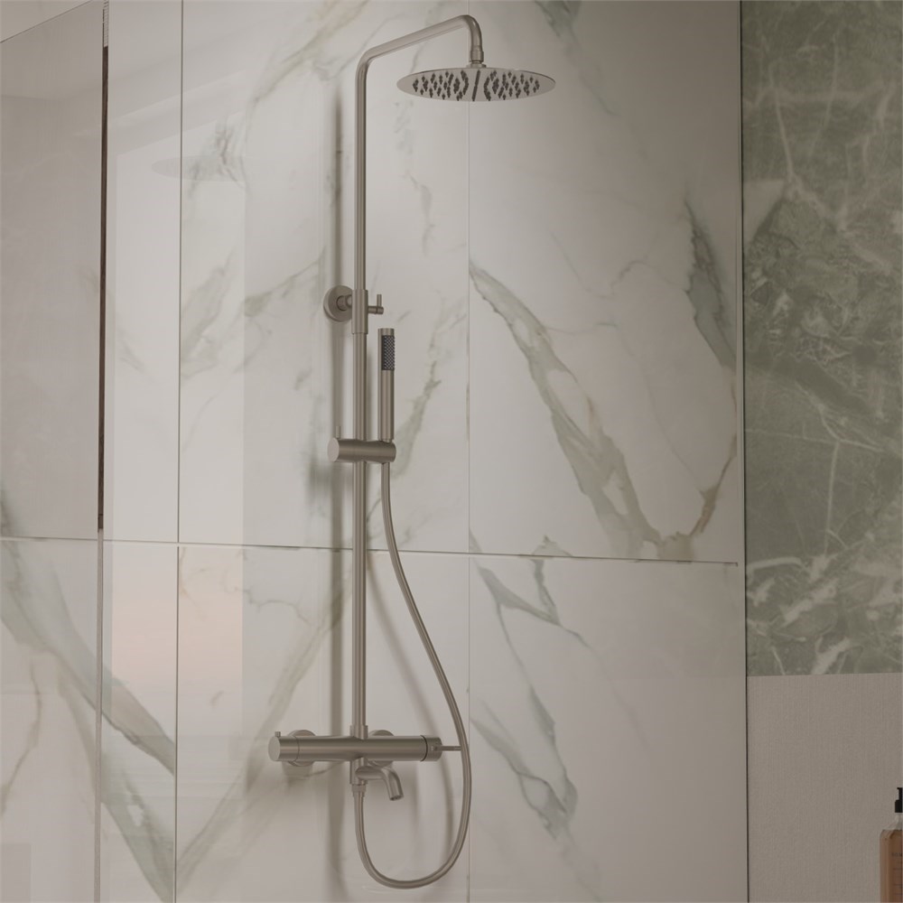 VINCEA Душевая стойка Villa VSFS-1VL1BN с изливом, 25см верх. душ из нерж. стали, брашированный никель