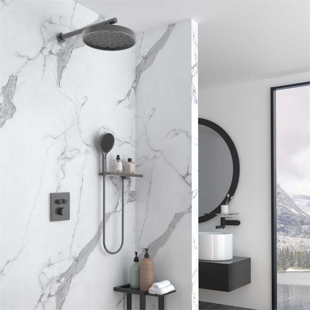 VINCEA Душевой комплект Inspire VSFW-3I21MT2RGM встраиваемый, термостат, двухрежимный, вороненая сталь