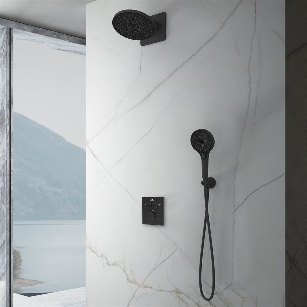 VINCEA Душевой комплект Inspire VSFW-3I21MT5MB встраиваемый, термостат, двухрежимный, черный