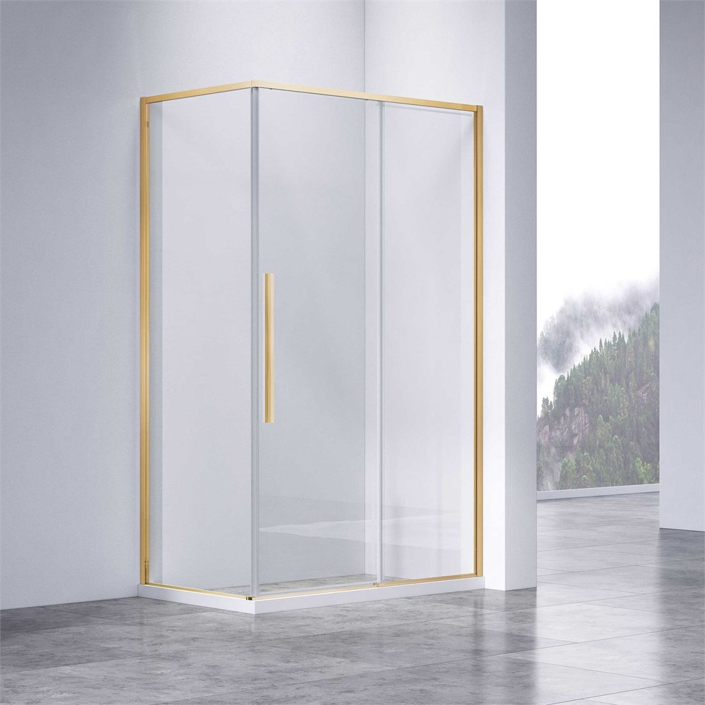 VINCEA Slim-N Душевой уголок прямоугольный размер 110x90 см, двери раздвижные, профиль - брашированное золото / стекло - прозрачное